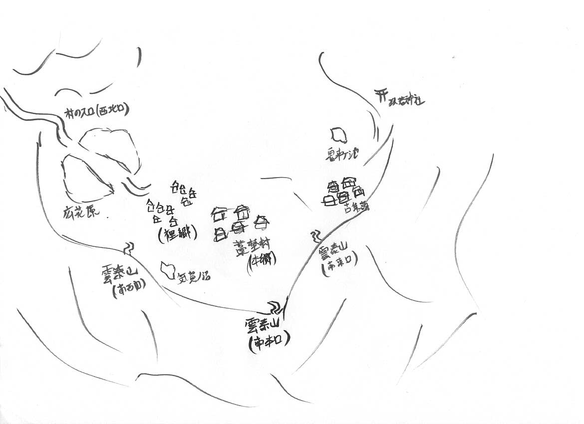 四側駅下車後、雲泰山へ向かって南東へ徒歩で移動。約2時間で村境(西側)に辿り着きます。